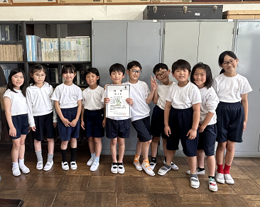 陸上をがんばっている子を校長室で表彰しました。同じ学級の友だちもお祝いにかけつけてくれました。友だちのがんばりを応援し合える素敵な3年生です☆