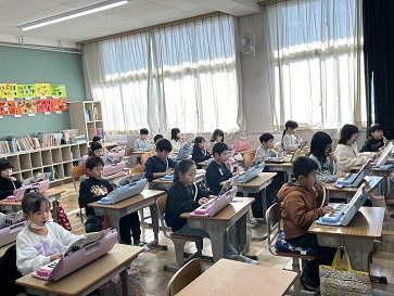 上手な鍵盤ハーモニカの演奏が聞こえてきたので、教室をのぞきに行きました。友だちと音を聞き合いながら一生懸命吹いていた子どもたち!一生懸命はかっこいいです!
