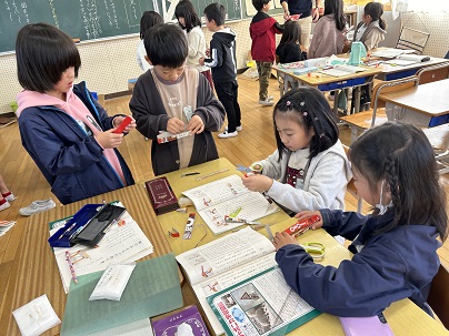 2年生は、国語の説明文「馬のおもちゃの作り方」の学習で、実際に説明文の手順にそって馬のおもちゃを作っていました。「まず」「次に」など話の順序を示す言葉を意識しながら、ていねいに作っていました。作る活動をとおして、説明文の工夫を理解することができたと思います。