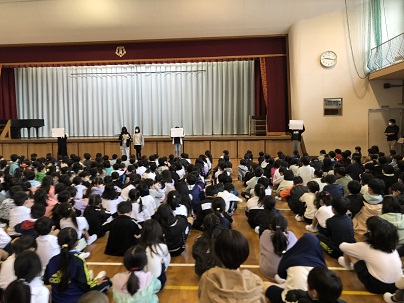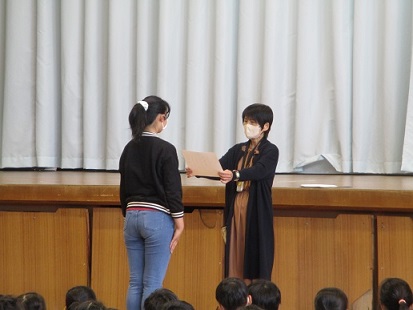 任命式後の第1回児童集会は、児童会役員が進めました。委員会から、早速連絡もありました。これから、自分たちの力でどんな集会にしていってくれるのか、高学年の活躍が楽しみです!