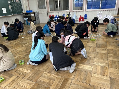 三重県カルタをつかい楽しみながら三重県の学習をしていた4年生。