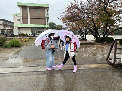 友だちとおそろいの長ぐつでポーズをとってくれた子どもたち。