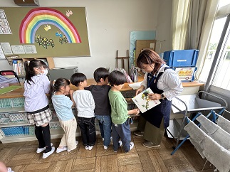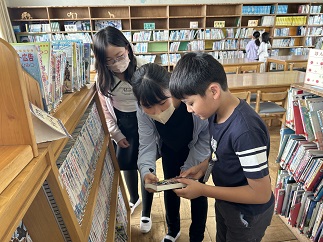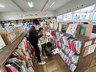 図書館の先生が、イベントを企画してくれました。どこにもどしたらいいのか分からなくなってしまった本を、本棚の正しい場所に子どもたちにもどしてもらいます。子どもたちは、図書館のカウンターで「ほんこちゃんの本をもどします!」と言って本を受け取り、背表紙のシールを見ながら場所さがしをしていました。高学年が下級生と一緒に場所さがしをする姿が微笑ましかったです。