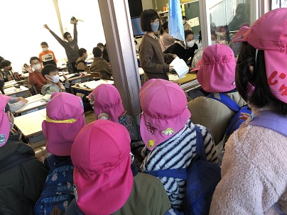 今日は、野村保育園の年長さんが、学校見学に来ました。授業参観の後は、図書室で読書です。いろいろな本を一生懸命読んでいました。
