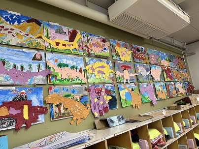1年生の教室に、のびのびと元気なきょうりゅうがいっぱいいました!