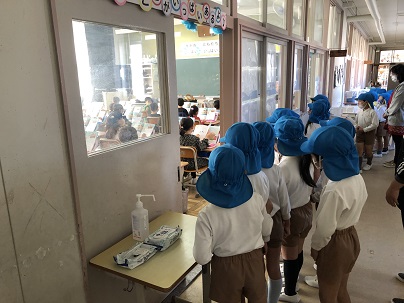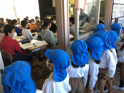 NOBENOこども園の年長さんが、歩いて学校見学に来てくれました。