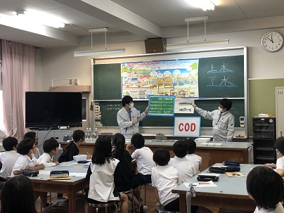 4年生は社会科の学習で下水道公社の方をお招きし、水をきれいにする過程や微生物の役割などについて学びました。水をきれいにするために、今の自分にできることがあるはず。学習をとおして考えていってほしいです。
