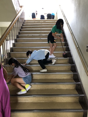 階段掃除の4年生が、階段を丁寧にぞうきんでふいていました。「3回ふいてます」とのこと。子どもたちの毎日の丁寧な掃除のおかげで気持ちよく過ごすことができます。ありがとう!
