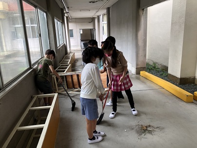 掃除の時間に校内をまわっていたら、渡り廊下を、友だちと力を合わせて掃除をしている素敵な3年生に出会いました♡