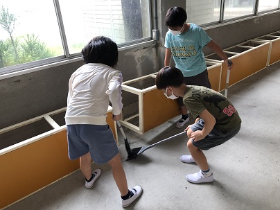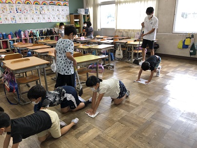 すみまで気を配り、友だちと協力して一生懸命掃除する3年生☆