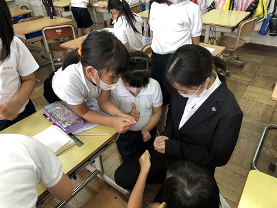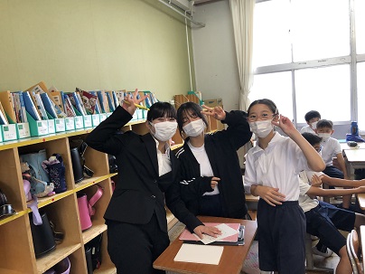 子どもたちは、若い教育実習の先生が来たことに大喜び!休み時間には、教育実習生を囲んで、たくさんお話をしていました。