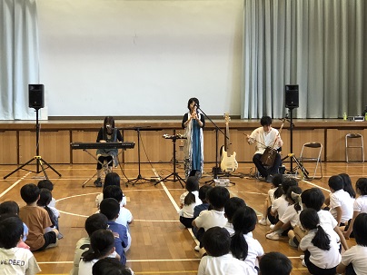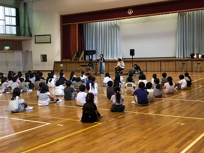 今日の午後、2年生と3年生が3人グループ「ソニド」の演奏を聴きました。馬頭琴、ケーナ、オカリナのしっとりした音色を子どもたちも気持ちよさそうに聞き入っていました。最後は音楽のリズムに合わせノリノリで身体を動かしました。心に響くすてきな時間を過ごすことができました。