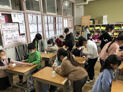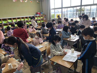 何日も前から、どのように説明したら1年生が分かりやすいのか、文を考えたり練習したりしてきた2年生。とてもていねいに、分かりやすく1年生に教えていました。1年生が自分で作りあげることができるように、優しくアドバイスしながら、1年生を温かく見守る2年生は、本当に素敵でした♡1年生も、2年生の話を一生懸命聞き、けん玉を作っていました。完成したけん玉で遊ぶときには、2年生にうまくできるコツを教えてもらっていました。楽しく取り組む子どもたちを見て、異学年での活動は子どもたちの意欲と自信につながるんだなあと感じました。