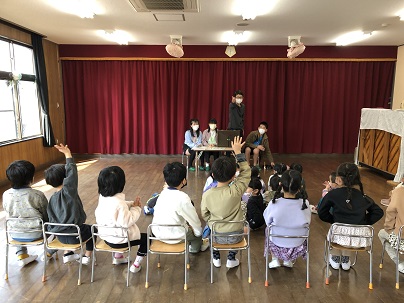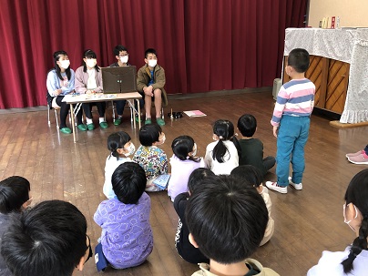 6年生の子どもたちは、11月から、のむら幼稚園年長さんのミニ先生として、読み聞かせをしたり年長さんの質問にこたえたりしてきました。そのミニ先生も今日で終わりです。