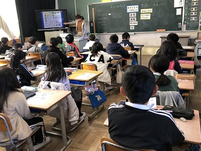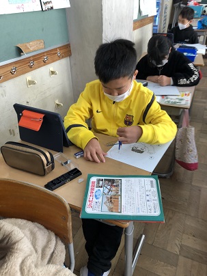 4年生はカルタづくり。冬に関係した内容で考えています。心がほんわかあたたかくなる下書きばかりでした!出来上がりが楽しみです。