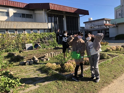 栽培委員会の6年生、朝から花壇の水やりです。ありがとう!