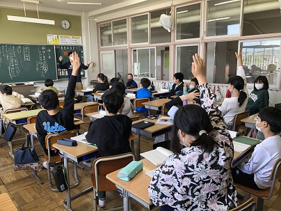 6年生の国語で、担任の先生の「伝えよう」という声かけに、子どもたちは手をぴんとあげ発表していました。3年生の算数でも、まわりの友だちに伝わるように、しっかりとした声で発表していました。友だちと学び合いたい!気持ちが分かります。