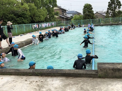 むし暑い日になりました。今日から水泳がはじまり、1年生、3年生、4年生、6年生が プールに入りました。「水の中でジャンケンができたよ」「顔をつけることができてうれしい!」「気持ちよかった~」「次が楽しみ」・・水泳の授業のあとの子どもたちの声から、楽しい時間だったことが伝わってきました。