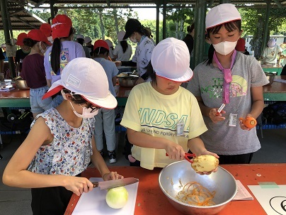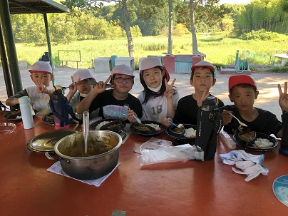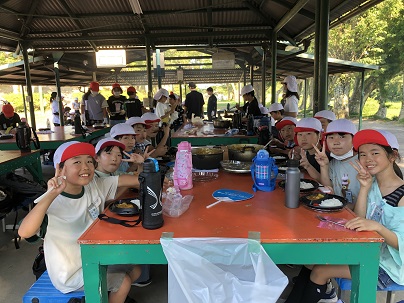 終業式の午後、5年生はデーキャンプに行きました。自然の中で友だちと作ったカレーの味は格別のようです。キャンプファイヤーではフォークダンスやゲームを思いきり楽しみました。友だちとの活動を楽しむ子どもたちの笑顔が素敵でした!