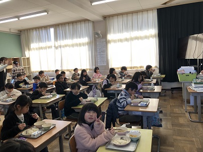 今日から給食です。マスクを外した笑顔がとても可愛い3年生!