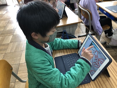 算数ではタブレットでグループ分けをします。いろいろな考え方ができます。