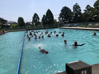 今日もプールでは子どもたちの元気な声が響きわたっていました。とても気持ちよさそうです。