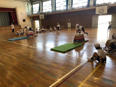 3年生の体育はとび箱です。友だちと協力して自分たちで準備していました。挑戦する姿、とび終わってからの姿、準備する姿、どの姿もとてもかっこいい3年生です!