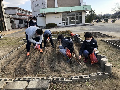 栽培委員の子どもたちが、休み時間を利用して、体育館前の花壇にチューリップの球根を植えてくれました。卒業式の日を満開のチューリップで飾りたい!という子どもたちの気持ちが嬉しいです。