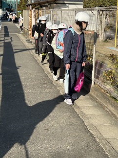 朝、子どもたちは、6年生卒業後に班長になる5年生や4年生が先頭になり、通学団で登校してきます。うしろから6年生が優しく見守ってくれています。今度は新しい班長さんが下級生に背中を見せる番です!