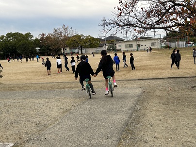 朝の休み時間、バランスよく一輪車に乗っている4年生をみつけました。4年生になってから練習をはじめたとのこと。とても上手になりました!