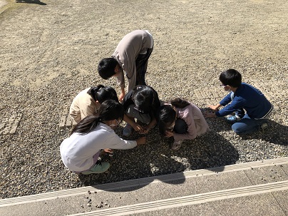 玄関前にいた子どもたち。何をしているのかのぞいてみると・・