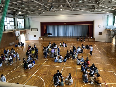 1年生と6年生がペアになり、ゲーム形式でグループをつくり、自己紹介をしたりしりとりをしたりしました。1年生にていねいに話しかける6年生はさすが最高学年☆みんな、仲良しになりました!