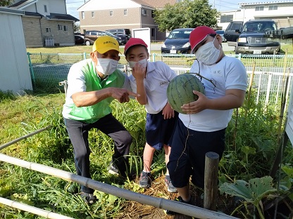 立成小学校では、立派なスイカが育ちました。
