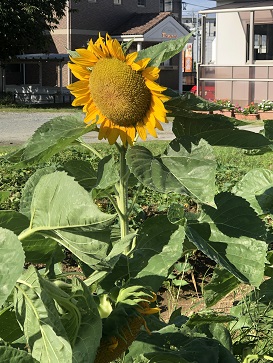 野村幼稚園の大きなひまわりの花が、毎日、子どもたちの登下校を見守ってくれています。