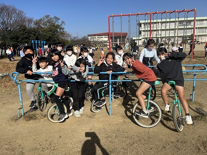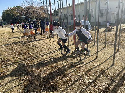 いま4年生では、一輪車がはやっています。毎日休み時間に練習しています。とても上手になってきました!