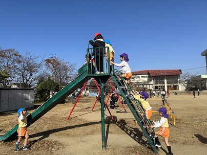 今日の20分休み、NOBENOこども園とのむら幼稚園の子どもたちが運動場に遊びにきました。小学生とだるまさんころんだをしたり、遊具で遊んだり、思いきり楽しんでくれたようです。また遊びに来てね!