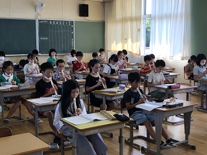 音楽室からリコーダーの音が聞こえてきました。音がそろっていて、とてもきれいです。そんな音にひかれ、音楽室をのぞいてみると、4年生の音楽の授業でした。友だちと音を聴き合い、真剣に気持ちよさそうに吹いていました。