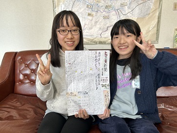 先週、学級新聞をつくるために校長室にインタビューにきた5年生。完成した新聞を見せにきてくれました。二人のアイデアと工夫がいっぱい、読む人を笑顔にするとても素敵な新聞です☆私も楽しく読ませてもらいました!