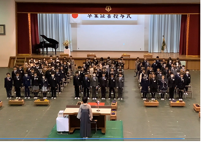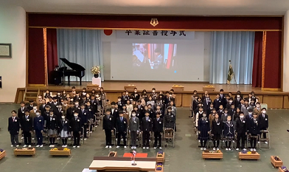 卒業証書を受け取る卒業生一人一人のまっすぐなまなざしが、とても素敵で感動しました。最高学年となり、さらにたくましく成長した子どもたち。中学校でも、しっかり前を向いてやるべきことをする子どもたちでいてほしいと願っています。