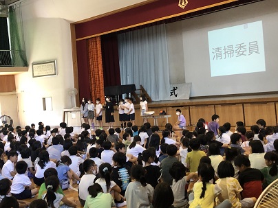 今日の児童集会の司会進行役は5年生代議員。児童会役員、6年生代議員と役割分担をし協力しながらすすめてくれました。今日の集会は、委員会や児童会からの報告や連絡がいっぱい。今年度立ち上げた児童会も、たのもしい高学年の力で前にすすんでいます!