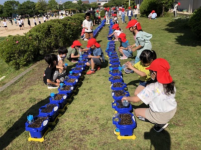 子どもたちの声を聞いて育つアサガオが素敵な花を咲かせてくれる日が楽しみです。
