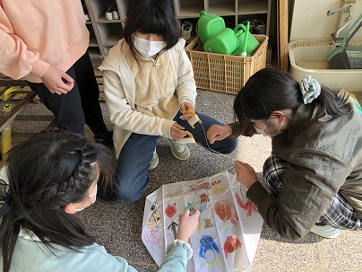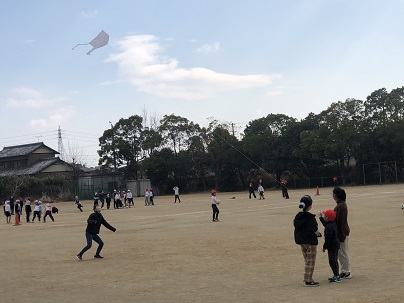 今日も1年生と6年生で凧あげをしました。けっこう風が強く、糸がからんでしまった凧も・・・すると、「1年生が一生懸命に作った凧だから、私たちがほどいてあげるね」と、6年生の子どもたちが、からんだ細い糸を一生懸命ほどきはじめました。6年生の横で、糸がほどけるまで、じっと待っていた1年生。6年生のがんばりで、糸もほどけ、凧あげを思いきり楽しみました。空にあがっている凧の下で、糸がからまないよう走って見守る6年生が、とてもおちゃめでした!