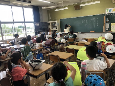明日は1学期の終業式です。今日は通学団集会で、1学期の登下校の反省をしました。夏休み中も交通ルールを守り安全に過ごしてほしいです。