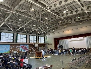 卒業式の総練習を行いました。本番どおり進行し、動きを確認しました。証書授与では、とても緊張していた6年生。真剣さが伝わってきました。そんな6年生を、5年生はしっかりみつめていました。