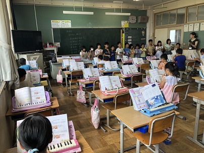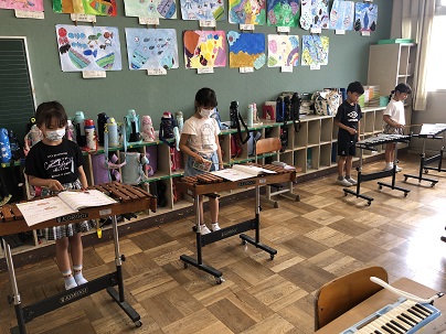 2年生の音楽は「かっこう」の合奏でした。お互いの音を聴き合いながら上手に合わせていた子どもたち。子どもたちの演奏も笑顔も、とびっきり素敵でした!