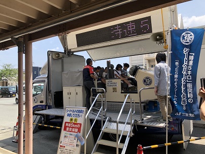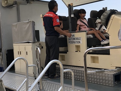 時速5㎞の衝突体験車を準備していただき、シートベルトの大切さを体感しました。