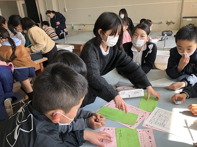3限目は通学団集会。3学期の反省や確認の後、4月に入学する新1年生にお手紙を書きました。