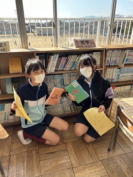 1月29日から図書委員が「図書館まつり」を開催しています。みんなが、いろいろな分野の本に出会えるよう、図書委員が知恵を出し合いました。借りた本の種類を図書委員が確認しビンゴカードに丸をつけてくれるという企画です。本を探すとき、本棚の工夫も知ることができるビンゴで、様々な種類の本に興味をもつことができる素敵な企画だと思います!読書の好きな子が増えるとうれしいなあ。
