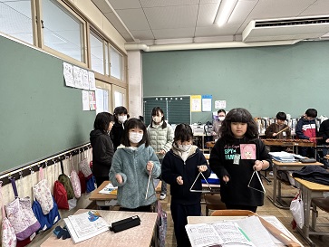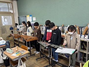 1限目、3年生が「練習中のミッキーマウスマーチを聞いてください!」と、音楽の授業に招待してくれました。子どもたちの合奏の音は、とても明るく温かく、朝から心をポカポカにしてくれました♡リズムに合わせて身体を動かしたり、友だちにニッコリ笑いかけながら演奏したり、音楽を楽しんでいる子どもたちは、本当にかわいかったです!