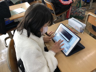 3年生はタブレットで文章を打つ練習。とてもはやく打てるようになりました。